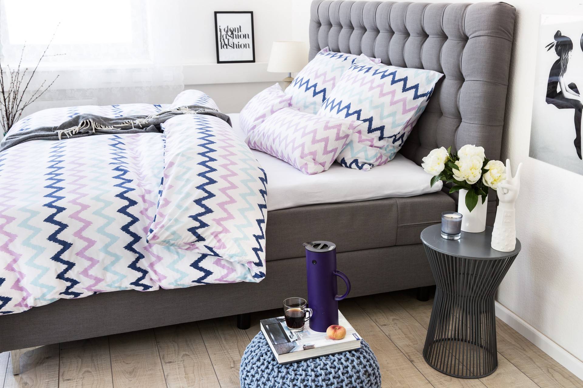 Чтобы создать в спальне скандинавское настроение необходимо использовать: