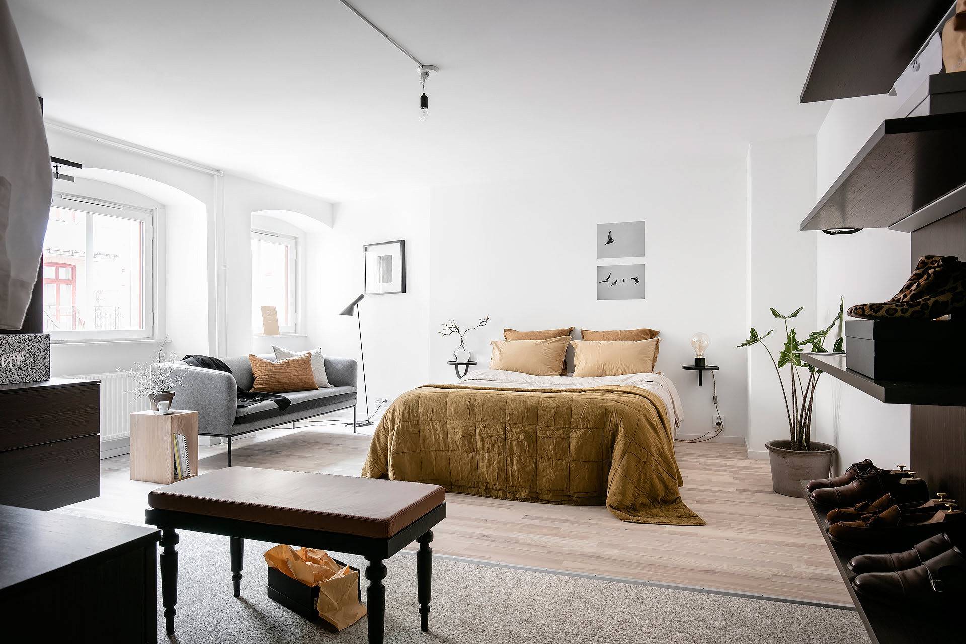 Даже небольшая спальня в скандинавском стиле может быть удобной и функциональной