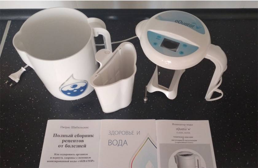 Ионизатор — это специальное устройство, которое напоминает электрический чайник. В нем есть два электрода — анод и катод. Именно это устройство для ионизации воды имеет самый большой объем воды, который проходит обработку. За один раз, можно получить около 2,7 литра щелочной (живой) воды и 0,3 — мертвой воды (если использовать темный электрод).