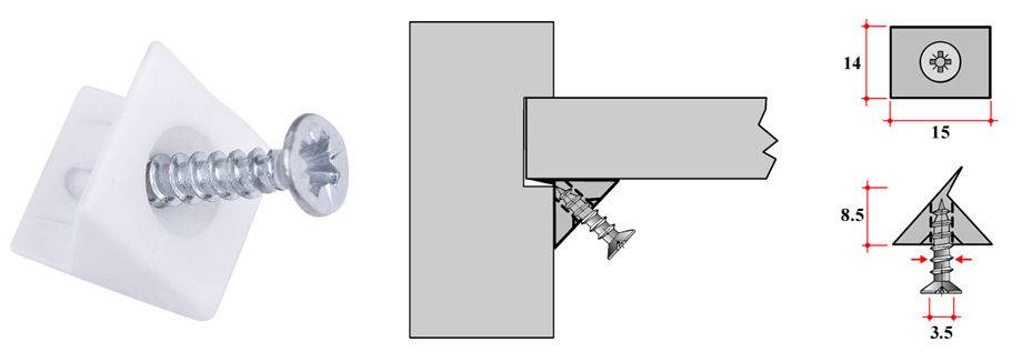 Самый простой по своему строению крепежный элемент, который представляет собой небольшую металлическую полосу, согнутую пополам, с отверстиями на обеих сторонах. Он используется для монтажа, крепления навесных шкафов, соединения их между собой.