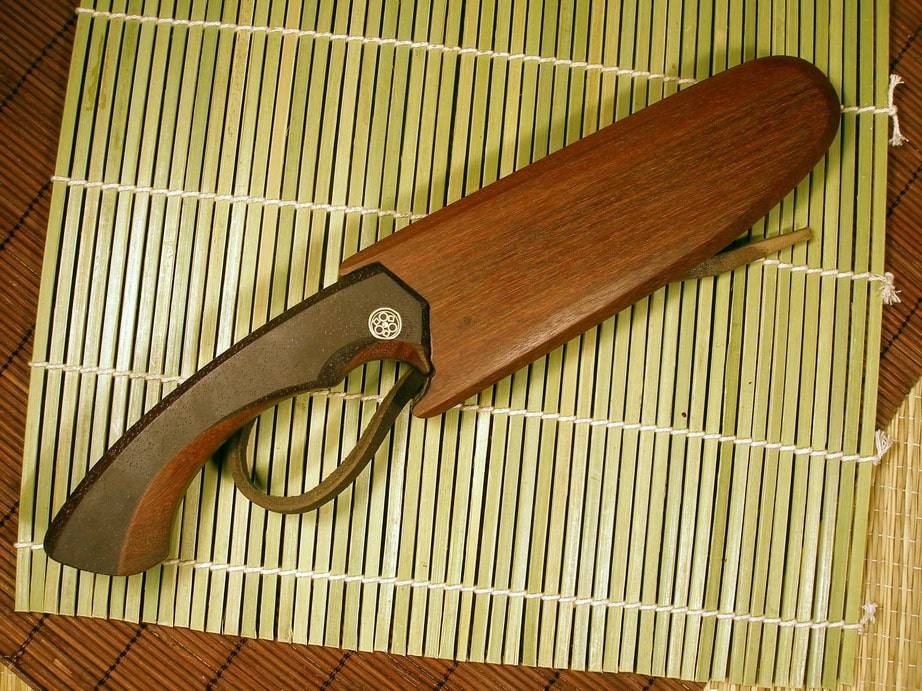 Оптимальным вариантом, который совместит в себе множество положительных качеств, является керамбит из дерева. Изделие имеет изогнутую форму, как лезвия, так и ручки, держится обратным хватом. Выглядит такой предмет достаточно привлекательно (как из стали, так и дерева).