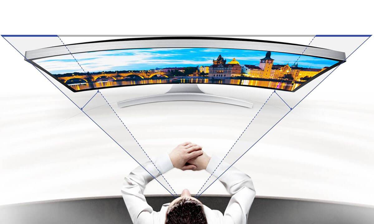 Главный аргумент в пользу такого решения – улучшенный обзор по сравнению с традиционным плоским экраном. Человеческий глаз устроен так, что в фокусе оказывается только небольшая область вокруг зоны, куда устремлен взор.
