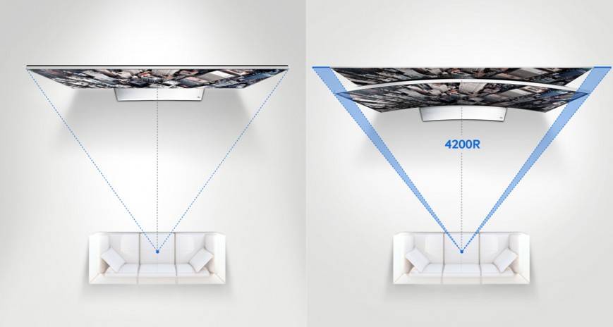Эффект погружения будет более глубоким при просмотре телевизора с изогнутым экраном, так как для производителей таких моделей этот критерий являлся одним из важнейших при изготовлении.
