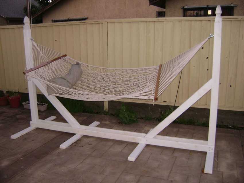 Идеальное положение гамака после подвешивания — форма банана, именно такое провисание считается оптимальным. В качестве опорного крепления могут использоваться специальные каркасы, которые приобретают в магазинах или делают самостоятельно.