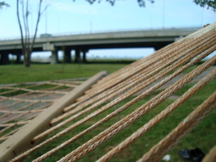 Не стоит крепить гамак к тонким деревьям. Лучше использовать для этого деревянные стволы с объёмом в 20–30 см. Для того чтобы не принести вред дереву, при креплении верёвок вокруг ствола можно подложить под шнуры пластик или плотную ткань.
