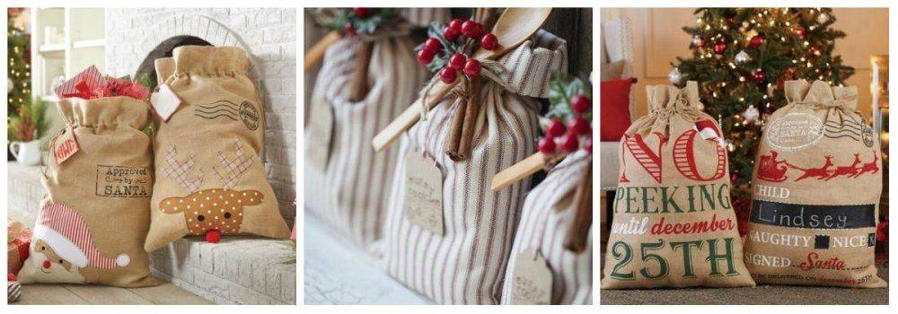 Мешочки для новогодних подарков из мешковины