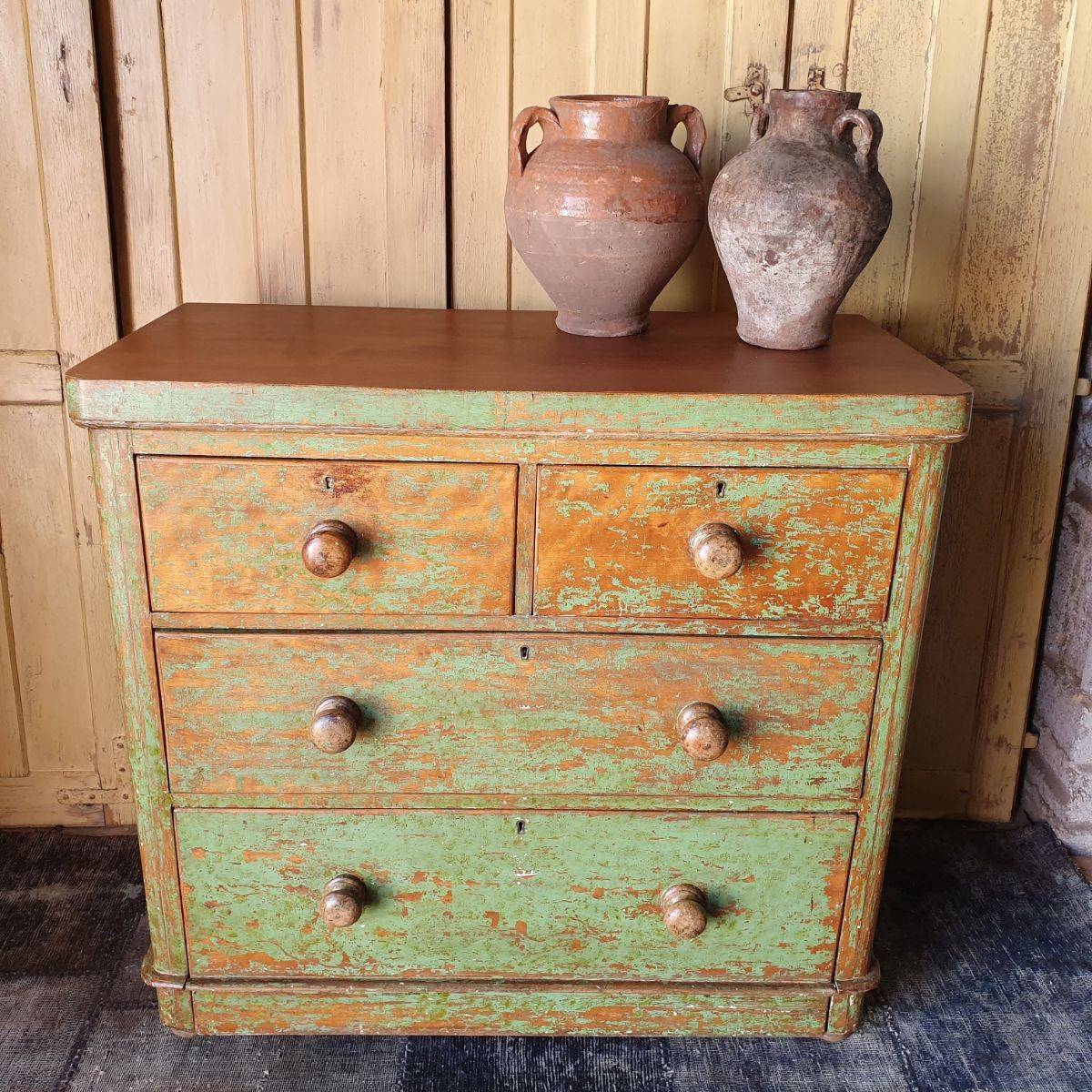 Состаренная мебель – потертости, патина, винтажная фурнитура и даже маленькие трещины в этом стиле являются плюсом.