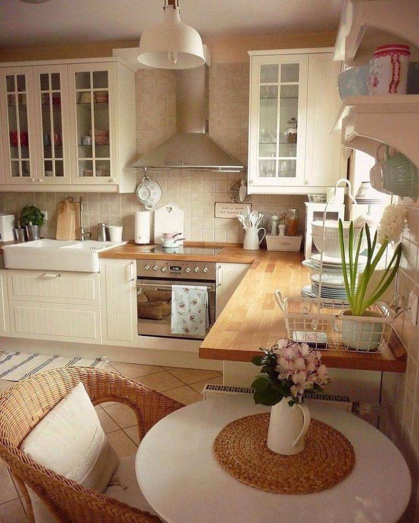 В этом стиле можно смело выставить напоказ красивые, полезные или просто милые сердцу мелочи. Прихватки, баночки для специй, статуэтки, изящные вазы – все это только добавит уюта и создаст подходящую атмосферу.
