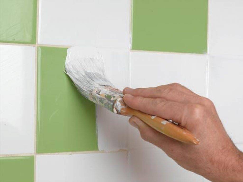 Стоит использовать краску, предназначенную для керамики или фаянса. Хорошо себя зарекомендовали латексные и алкидные составы. Следует покрасить небольшой участок облицовки, расположенный в малозаметном месте, а затем проверить стойкость покрытия.
