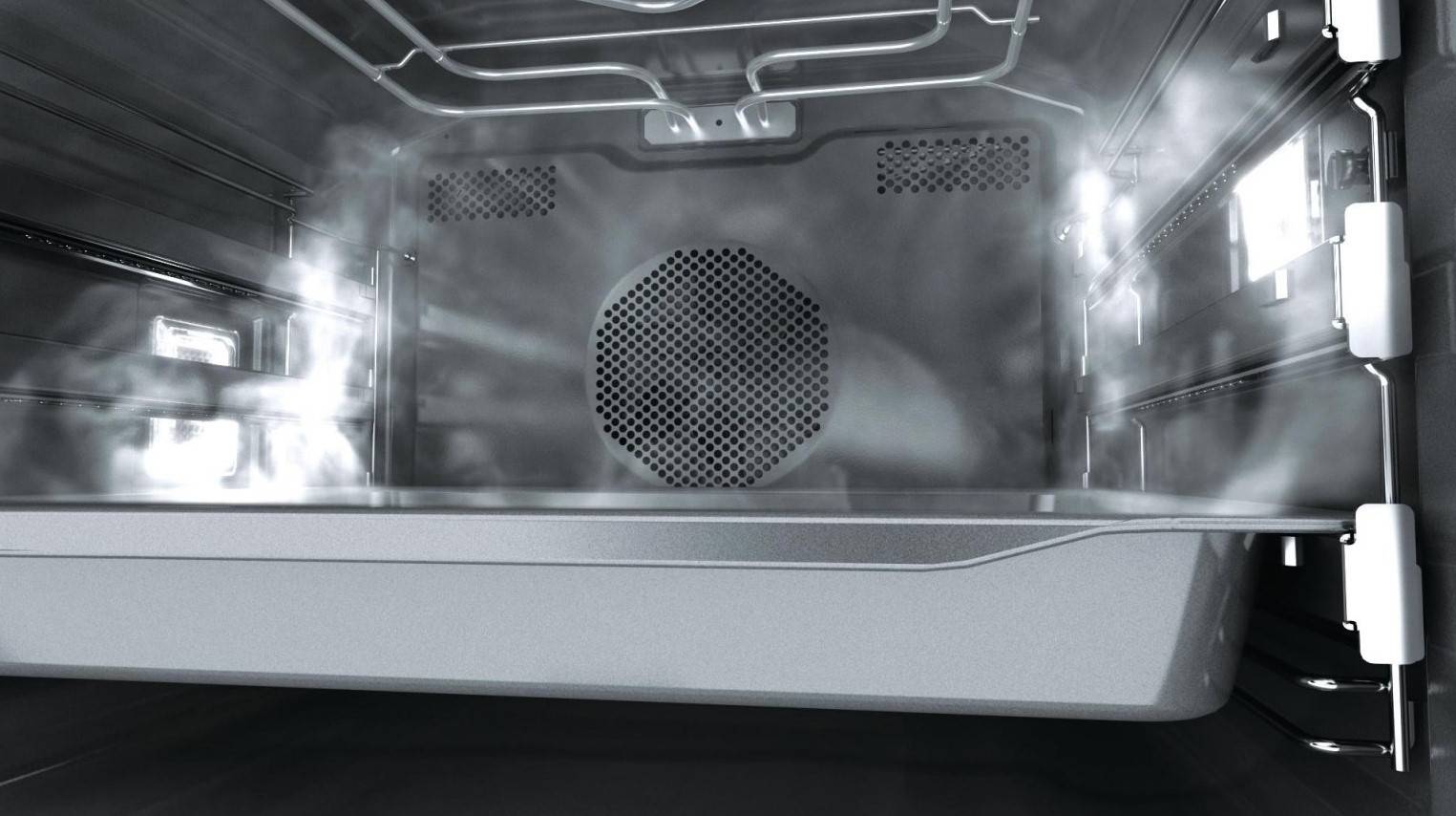 Принцип действия элементарен и основан на школьном курсе физики: вода в миске закипает, превращается в пар, который в свою очередь поднимается вверх и последовательно растворяет жир, нагар и прочие артефакты готовки.