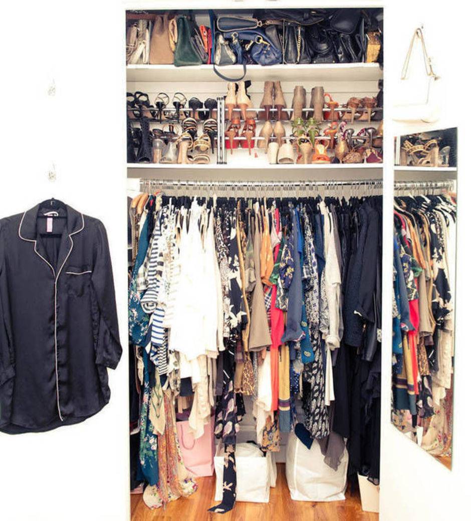 В результате такого метода, у вас в гардеробе формируются ряды. Способ позволяет на малой площади разместить действительно большое количество вещей.