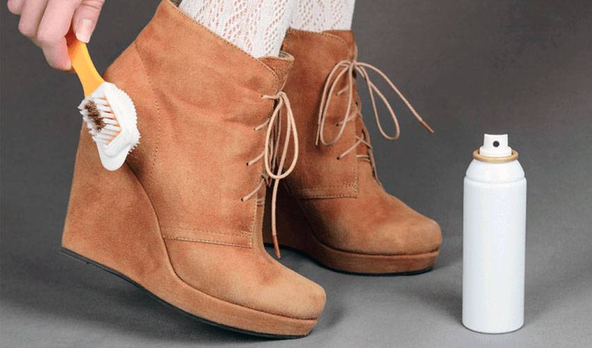 Замша и нубук после чистки щеткой обрабатываются специальной пропиткой.