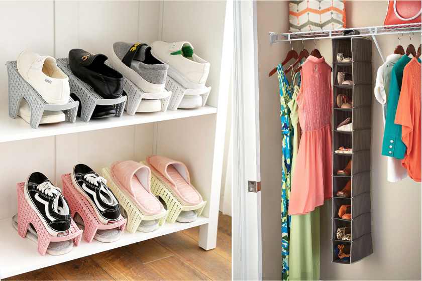 Если доведется увидеть в магазинах, то приобретите специальные полочки-органайзеры, которые встраиваются стенные шкафы или тесные прихожие. На них удобно хранить не только обувь, но и другие полезные вещи.