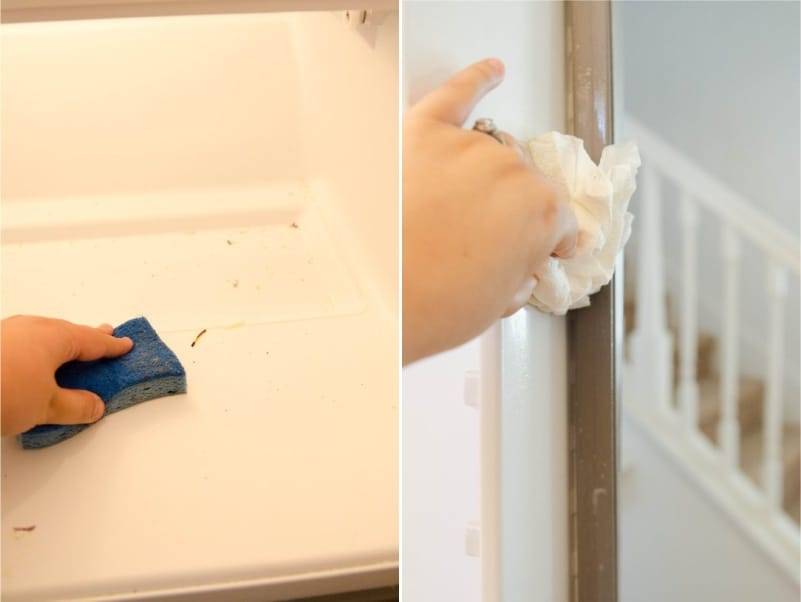 - Состав наносят на стенки холодильника губкой или чистой тряпкой.