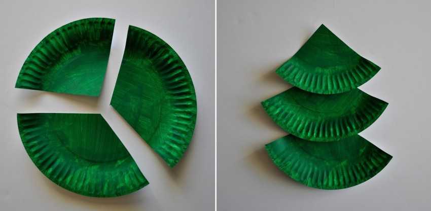 - Возьмите пластиковую или бумажную тарелку темно-зеленого цвета. Если такой тарелки нет, ее можно перекрасить в нужный цвет акриловой краской или гуашью. После перекраски нужно дождаться полного высыхания.