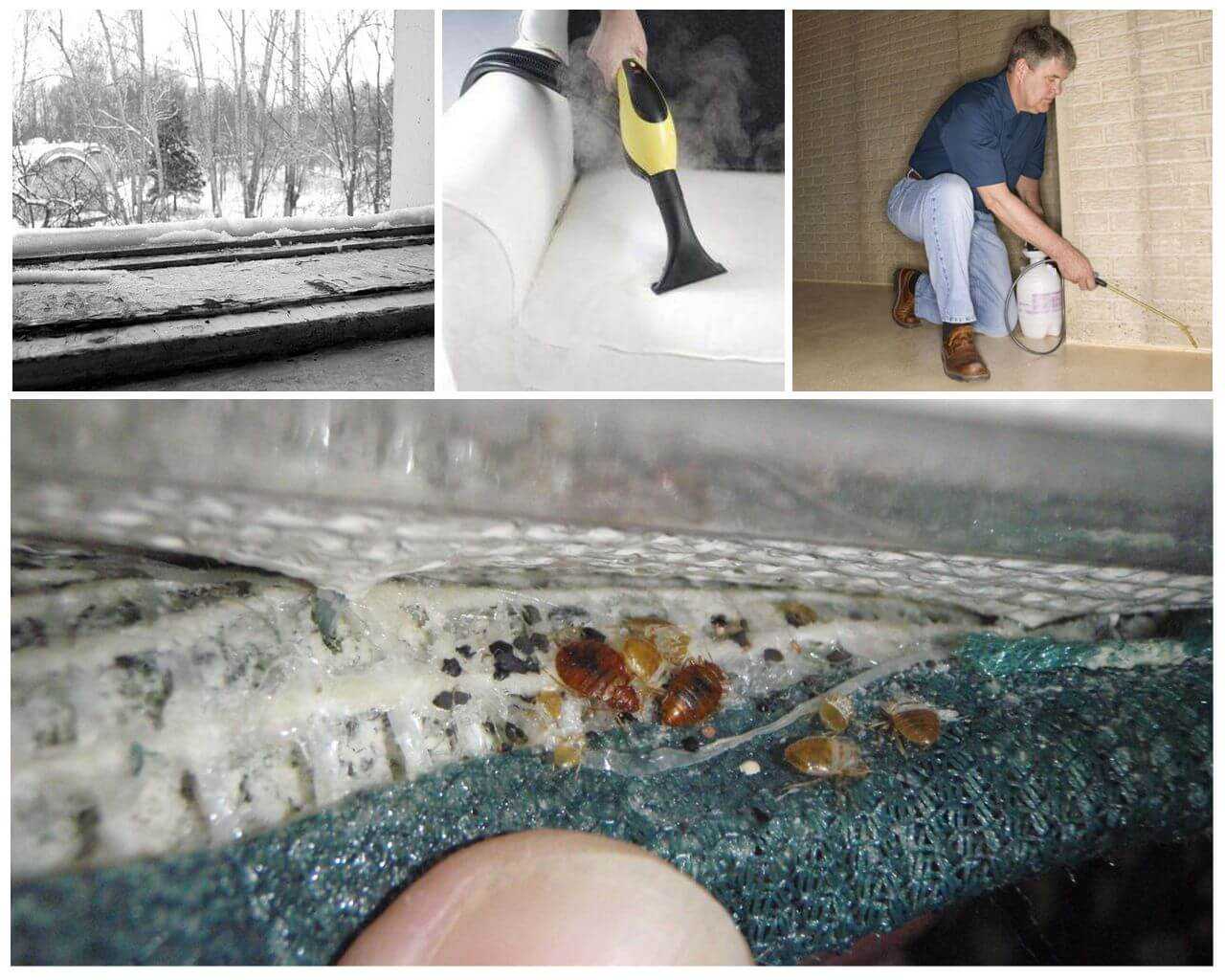 Зимой собрать все диванные покрывала и подушки и вынести их на балкон – от холода паразиты погибнут в течение 24 часов. Летом проделывается то же самое, так как жару эти вредители не переносят наравне с морозом. Высокая температура справится с клопами всего за два часа.