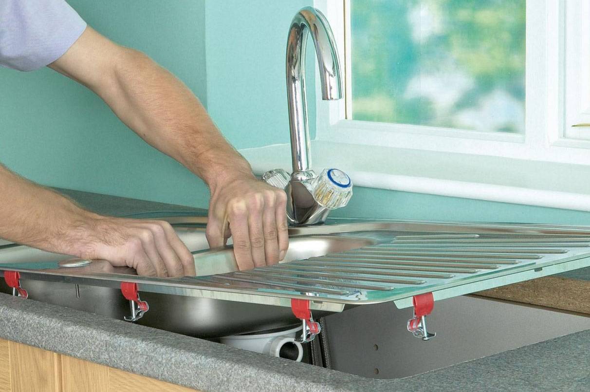 После установки на мойке смесителя и сливной арматуры можно переходить к креплению изделия на стене.