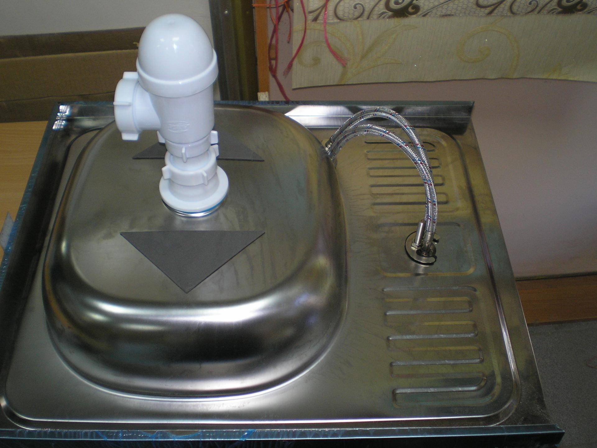- Монтируется на поверхность мебели смеситель, закрепляется сифон.