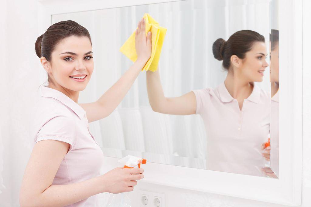 Если зеркало расположено на кухне или в непосредственной от нее близости, на него попадают пары, образующиеся в процессе приготовления пищи. Поверхности в ванной комнате покрываются высохшими следами от капель сконденсированного горячего пара и постоянно летящих во время купания брызг. Удалить такие загрязнения не так просто. Особенно если уборка производится от случая к случаю. Простое протирание зеркальной поверхности моющим средством приводит к размазыванию накопившейся грязи по стеклу.