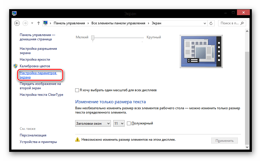 5. Вы увидите те же настройки, что и в «Разрешение экрана», поэтому останавливаться на этом не будем.