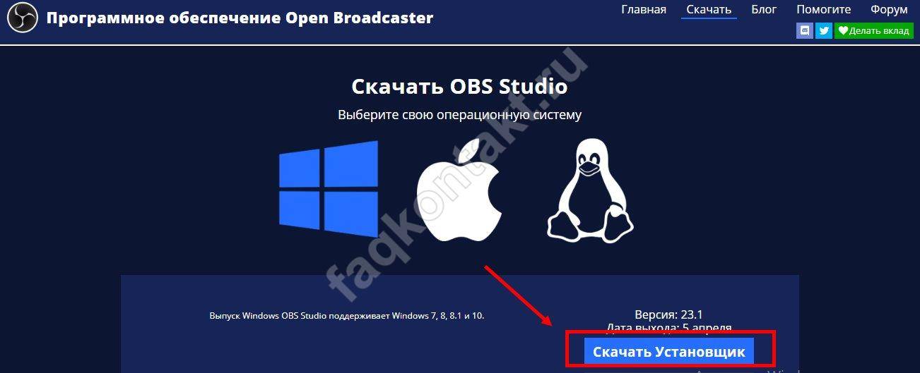 Бесплатно скачать OBS можно отсюда: https://obsproject.com/download.