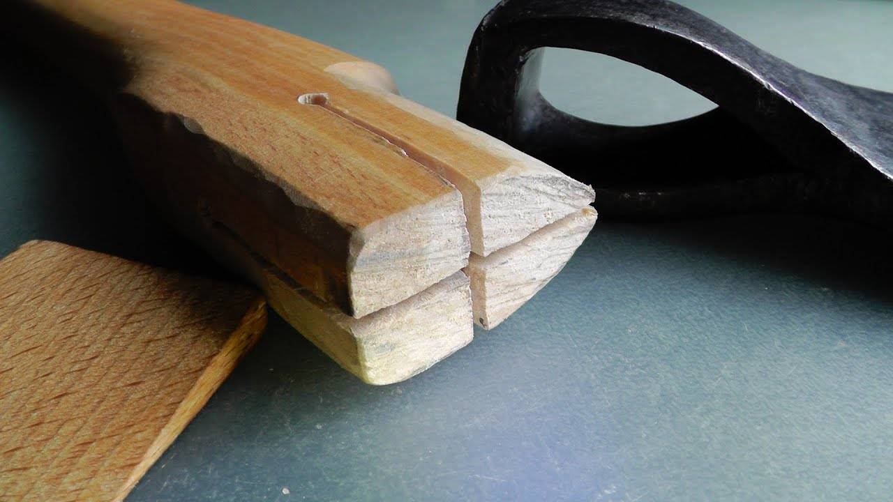 Бытует мнение, что деревянный клин в обязательном порядке должен быть произведен из той же породы дерева, что и рукоять. Однако это заблуждение. Главным условием при выборе материала является его прочность. В свою очередь, следует принимать в расчет и направление древесного волокна, так как рекомендуется соблюдать параллельность сужения клиньев. Это обезопасит орудие от возможной поломки.