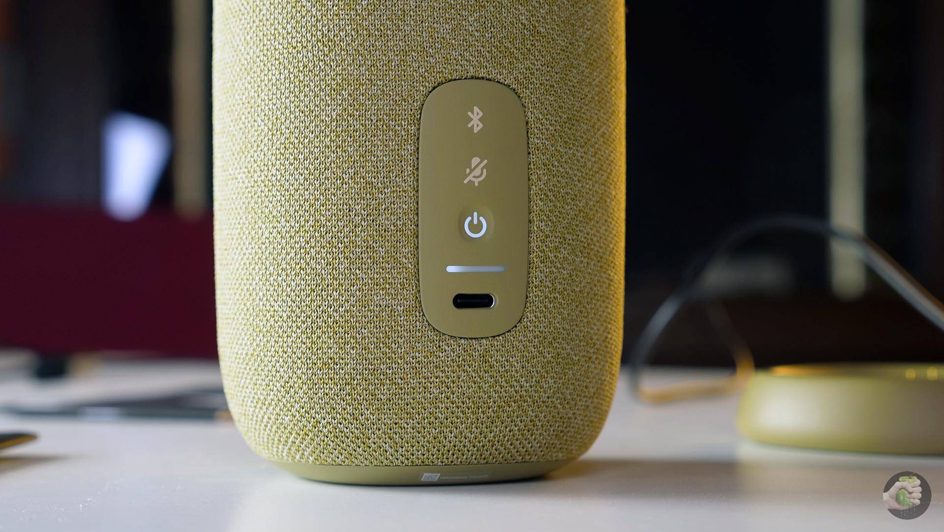 На передней панели лого JBL, а на задней — кнопка включения Bluetooth, отключения звука микрофона, кнопка питания, индикатор уровня заряда, а также USB Type-C: