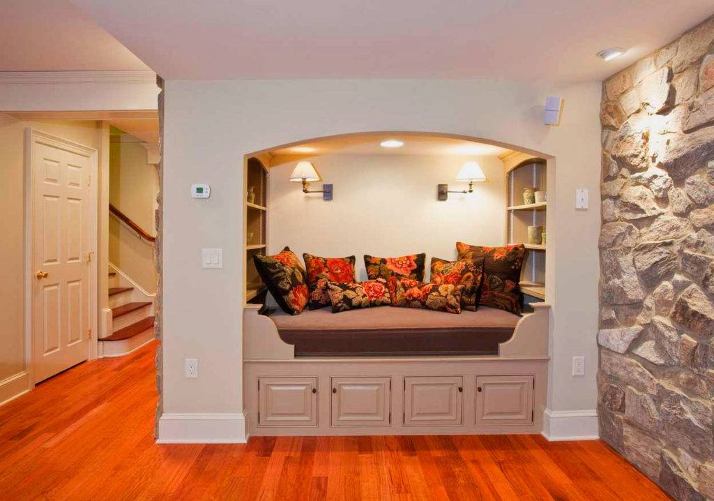 Но при обустройстве ниши особенно важен комплексный подход. Необходимо подобрать отделочные материалы, определиться с цветами и тщательно продумать дизайн-проект. Во время ремонта можно использовать готовые дизайнерские решения: