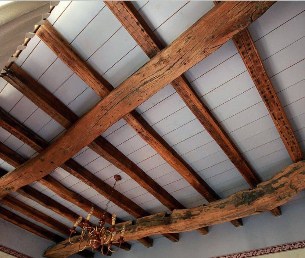 - деревенские деревянные балки на потолке — при выборе декоративных потолочных балок многие выбирают деревенский стиль в данной комнате. Если вы также выберете такую традиционную форму, помните, что балки отлично сочетаются со светлыми стенами и ретро-декором. Красивое кресло, зеркало в позолоченной раме или декоративный комод из дерева станут прекрасным дополнением такой композиции;