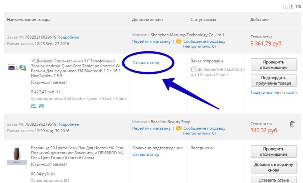Для этого открывают спор в своем личном кабинете. И сообщают, что товар не пришел в установленный срок. Китайские продавцы очень переживают за своб репутацию, поэтому быстро соглашаются вернуть денежные средства.