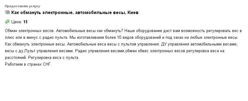 Lfvbh: (Znaytovar.ru): «Мой знакомый купил „черную“ технологию по коррекции электровесов. Средний обвес 5-10% независимо от веса, от 6 грамм до 15 кг. Отдал он за нее 1000$. Окупилась за 1 месяц».