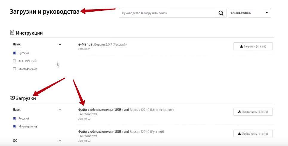 Этот способ требует больше времени, но безопаснее первого. Он пригодится тем пользователям, которые приобрели телевизор без доступа в интернет, или у которых сеть временно недоступна. Сначала следует узнать номер текущей версии ПО, установленного на телевизоре, а также номер модели. Как это сделать – мы описывали выше.