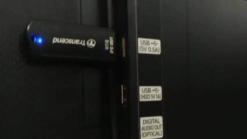 Во время выполнения инструкции нельзя выключить ТВ с электропитания. После подготовки флешки вставьте ее в соответствующий отсек на экране.