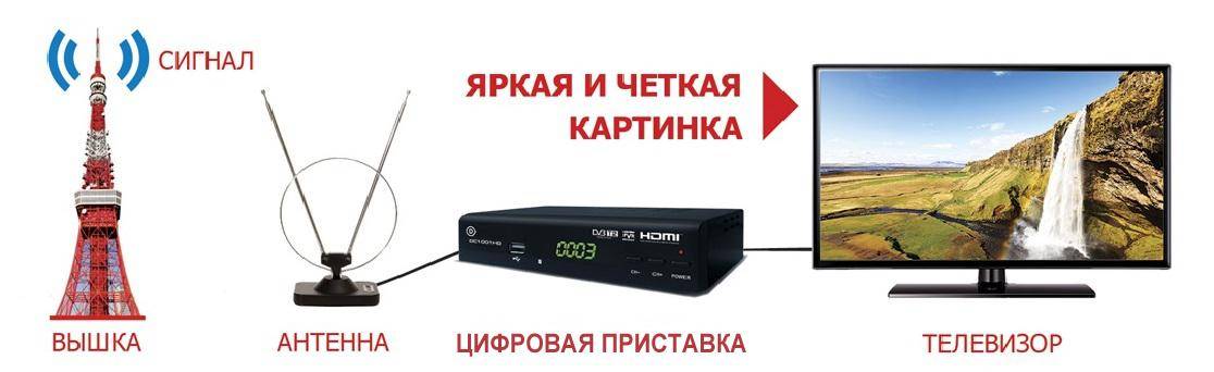 Полученный антенной цифровой сигнал требуется предварительно декодировать. В современных телевизорах для этого присутствует ТВ-тюнер с внешним разъемом DVB-T2. При его отсутствии требуется промежуточное устройство. В качестве него используется цифровой ресивер (приставка). Узнав принцип работы можно рассмотреть, какой цифровое ТВ лучше.