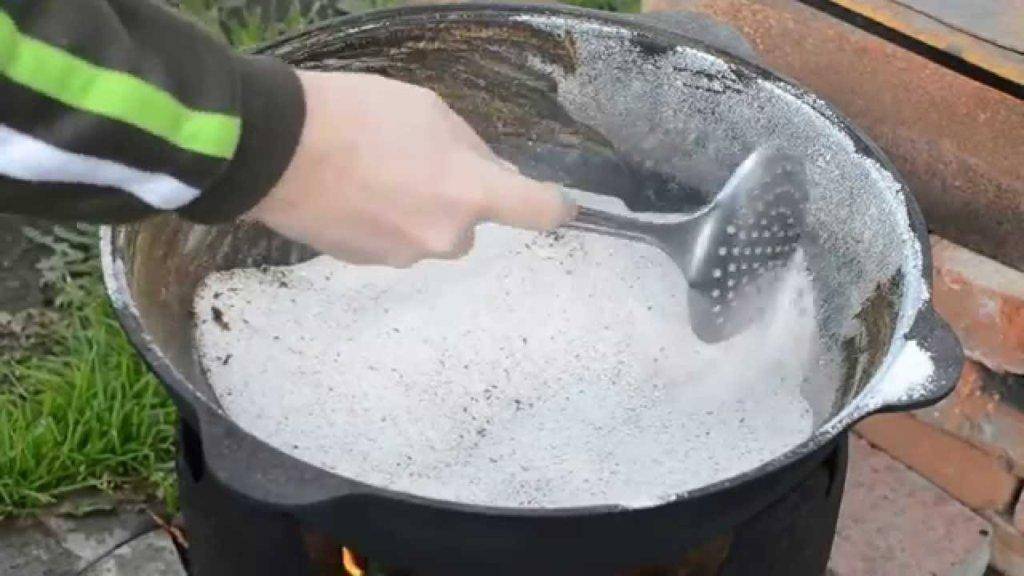 - Кипятят примерно 18-20 минут. Если казан сильно загрязнился, можно подольше покипятить.