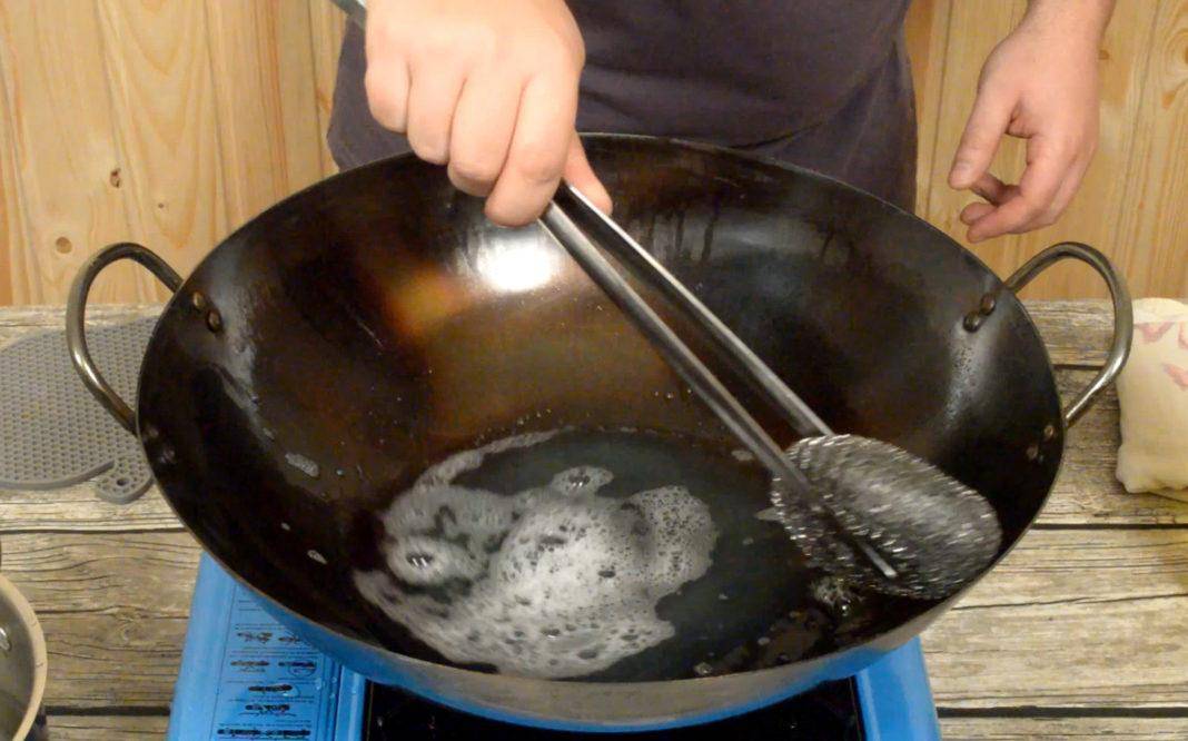 Вымойте покупку, используя средство для посуды или обычное мыло (на металле могут остаться частички технического масла и другие загрязнения), и тщательно просушите. Возьмите мягкую тряпочку, смочите ее в растительном рафинированном масле и протрите посуду внутри и снаружи. Излишки уберите при помощи бумажного полотенца, пройдясь им по всей поверхности.
