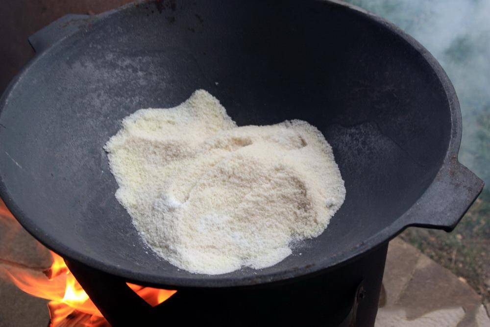 - После остывания казан снова ставят на огонь, в нем кипятят воду, хорошо окатывают все края.