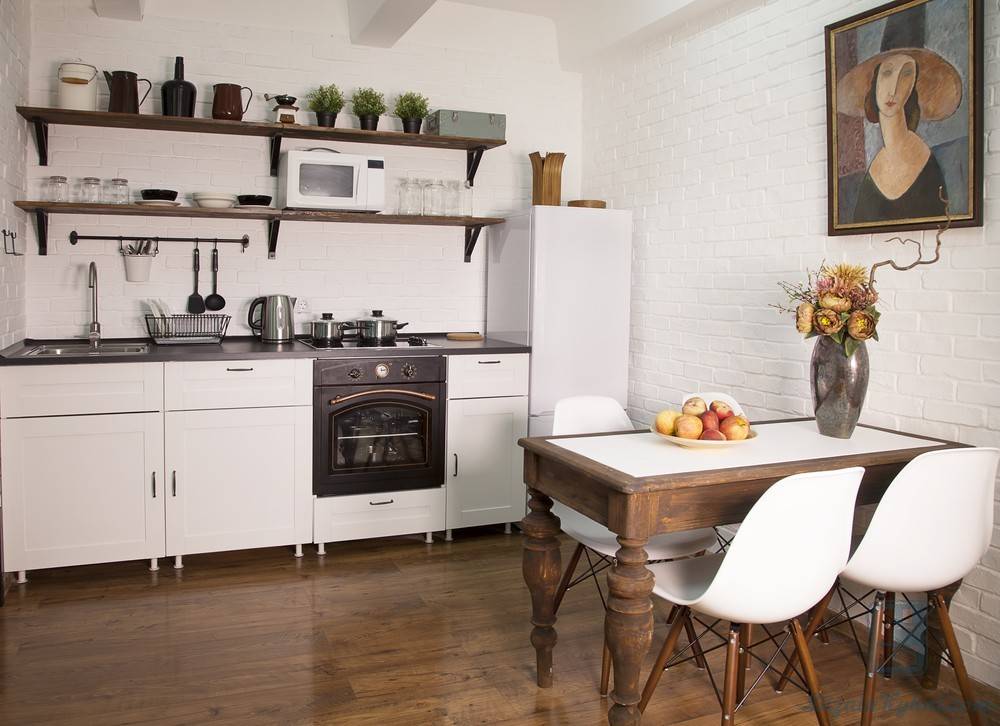 - Если ваша кухня маленькая, как, например, в хрущевке, отдайте предпочтение светлым оттенкам стен: они визуально увеличат площадь.