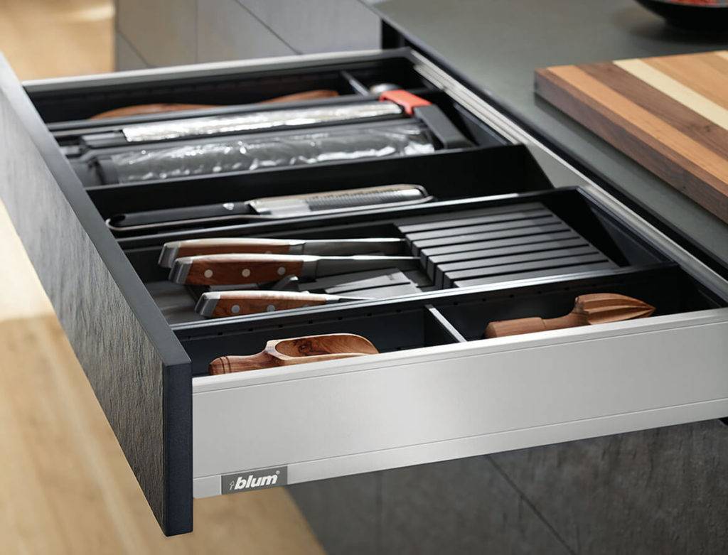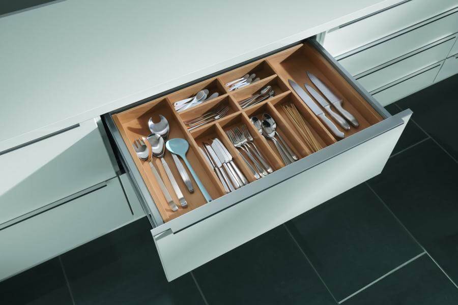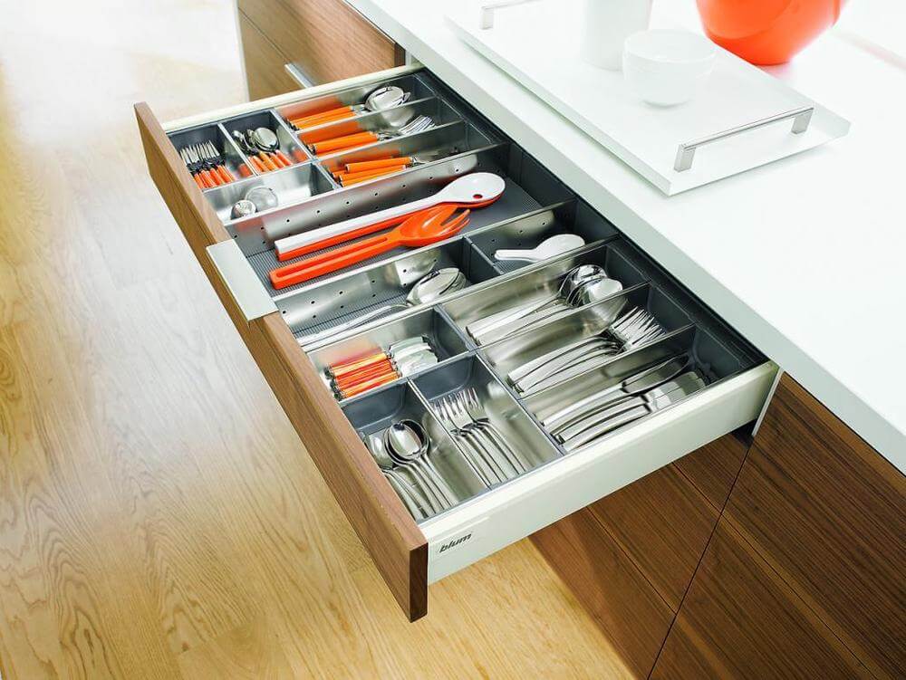 Виды выдвижных ящиков для столовых приборов