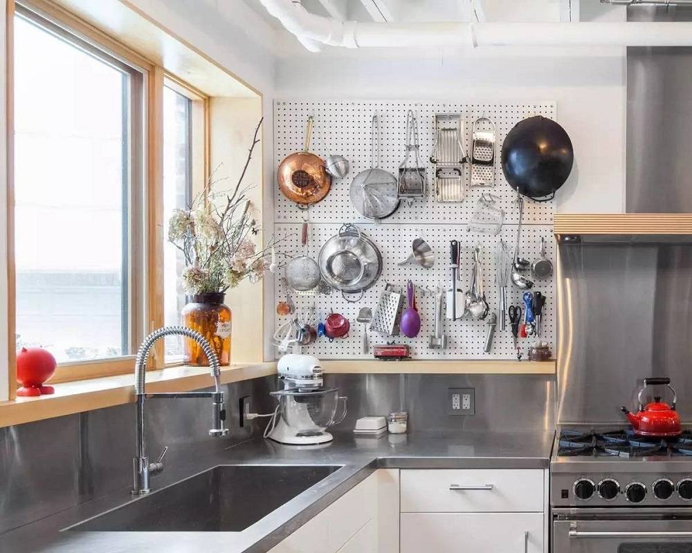 Творческий подход. Этот элемент относится к хранению приборов. Не всем повезёт иметь большую кухню, где станет гарнитур со множеством выдвижных ящиков. Некоторые довольствуются малым, где расположение утвари требует творческого подхода.
