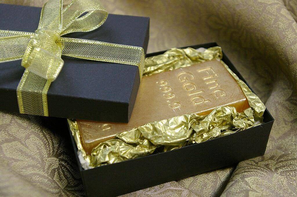 Великолепный дар – золотой слиток (найдете в любом банке). Конечно, это не купюры, но самая крепкая валюта.