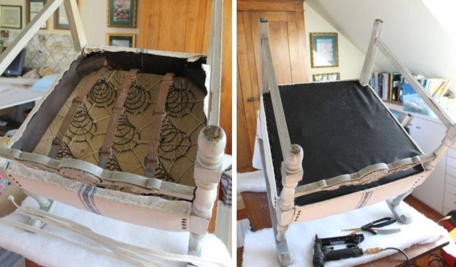 - Если стул пружинный, то, возможно, понадобится джутовая лента. Ей можно заменить пружины пришедшие в негодность.
