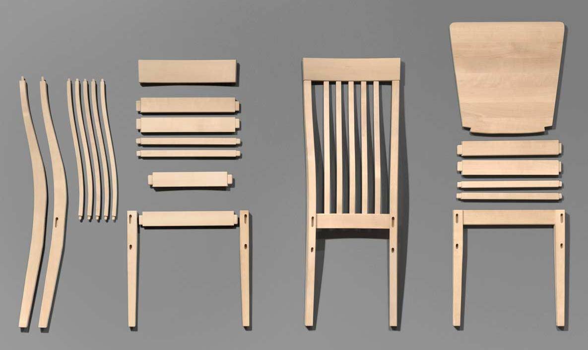 Собирают все детали стула в единую конструкцию, хорошенько проклеивая места соединения. До полного высыхания оставляют на два дня, зафиксировав места склейки зажимами.