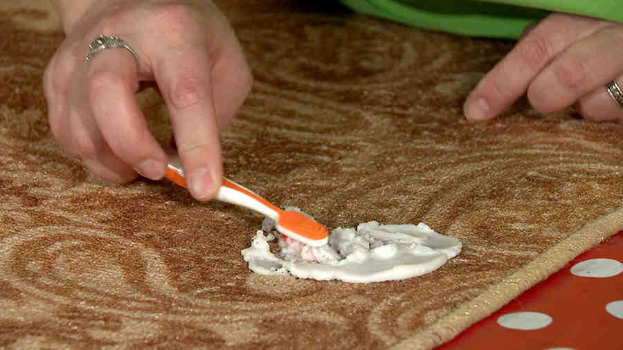 Если есть необходимость удалить свежее пятно в конкретном месте — используйте минимальную сухую чистку ковра. Насыпьте на загрязненный участок питьевой соды. При помощи мягкой губки или щетки слегка вотрите порошок в пятно, двигаясь от края пятна к его центру. Через 30 мин. соберите при помощи пылесоса.