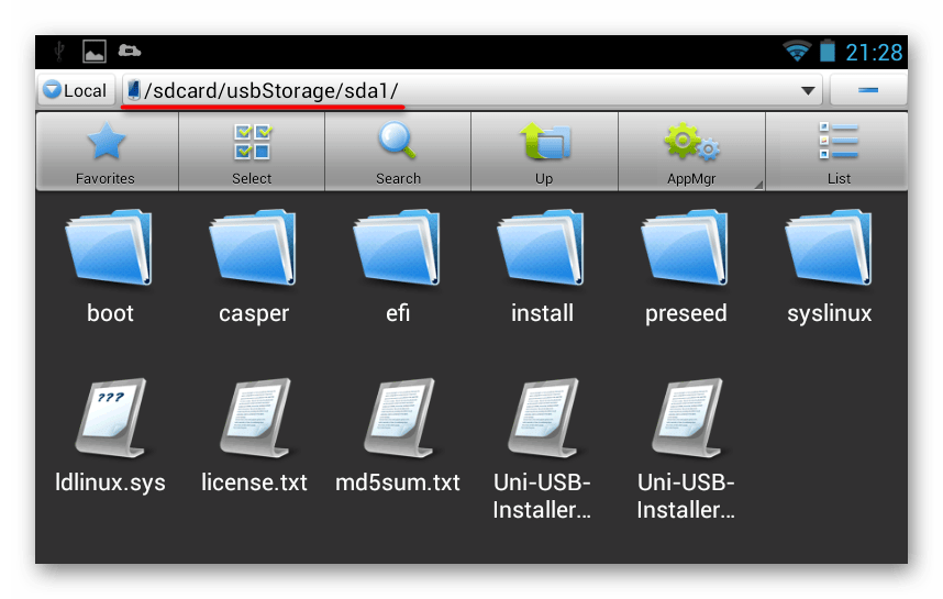 Далее запустите файловый менеджер, и в окне выбора дисков будет предоставлен список носителей данных. Найдите там ваш flash-носитель.