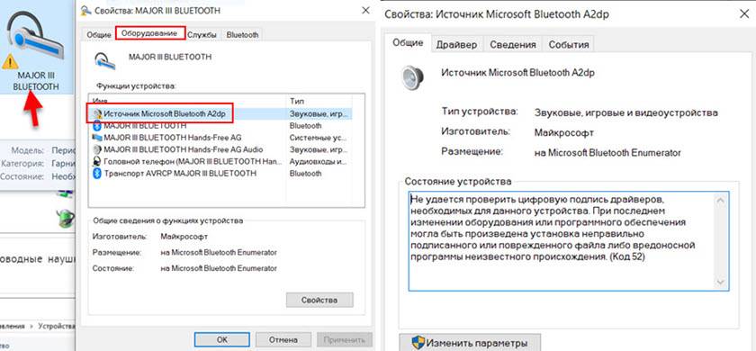 Ошибка драйвера (код 52) профиля Microsoft Bluetooth A2DP