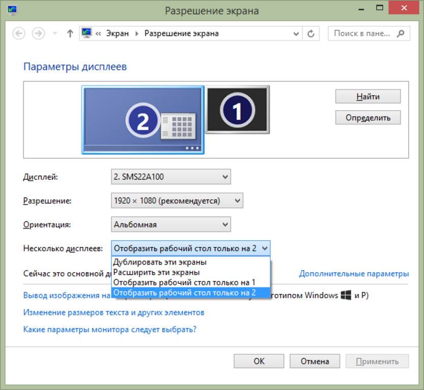 Настройка нескольких дисплеев