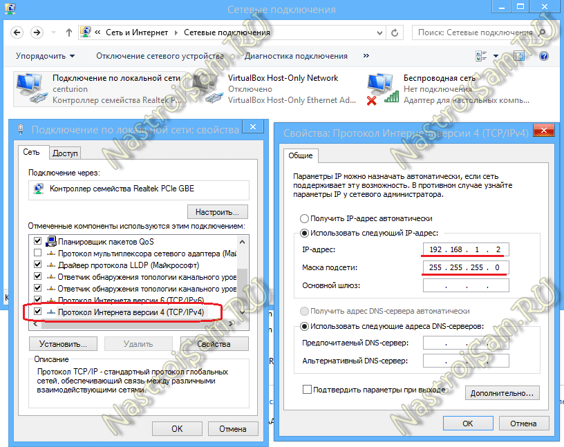 На втором — будет использоваться IP-адрес 192.168.1.2 маска 255.255.255.0: