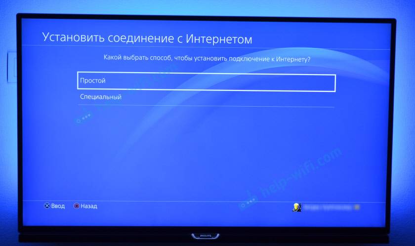 - Простой – автоматическая настройка подключения. PlayStation 4 сама установит соединение с роутером, или провайдером. Выбрав этот способ, у нас не будет возможности задать какие-либо настройки вручную. Подходит при подключении к роутерам (если на роутере запущен DHCP-сервер) и интернет-провайдерам, которые используют тип подключения “Динамический IP” (DHCP). Скорее всего вам нужно выбрать именно этот тип подключения. Если не знаете – выберите для начала его. Возможно, ваша игровая приставка подключится к интернету автоматически.