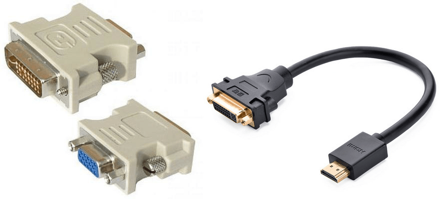 Технология DVI пришла на смену VGA и была разработана для подключения устройств отображения изображения, разъем не передаёт звукового сигнала. Разъёмы DVI и HDMI являются взаимно совместимыми, их можно комбинировать между собой, используя соответствующие адаптеры.